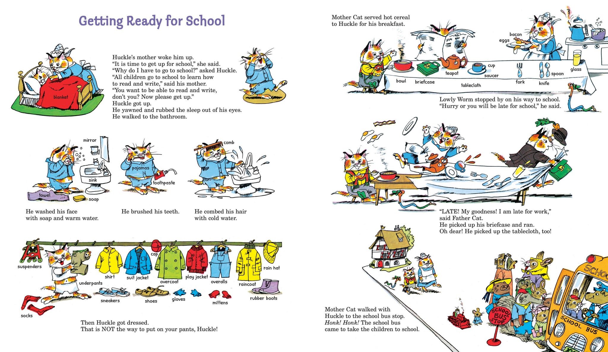 Jump on the school bus with Lowly Worm and Huckle Cat as they head off for an exciting day at school! Miss Honey is the best teacher ever. She teaches Huckle, Lowly, and all their friends about shapes, sizes and so much more! This Busytown storybook is a great way to prepare little ones for their first day of school!