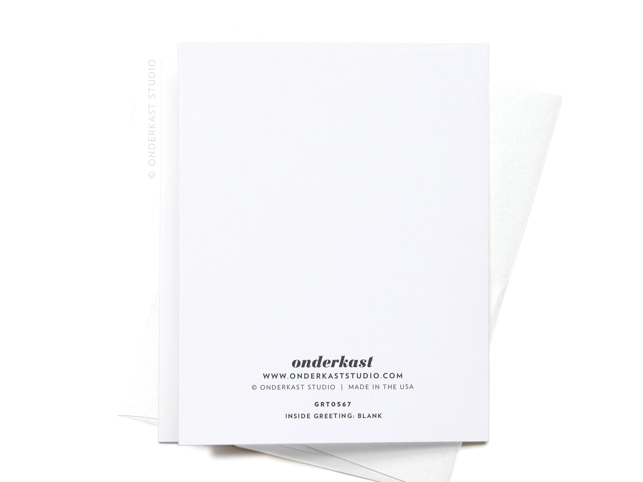 Printed on smooth white card stock paper that is thick and durable providing a premium feel to the card. Each card includes a matching white square flap envelope.